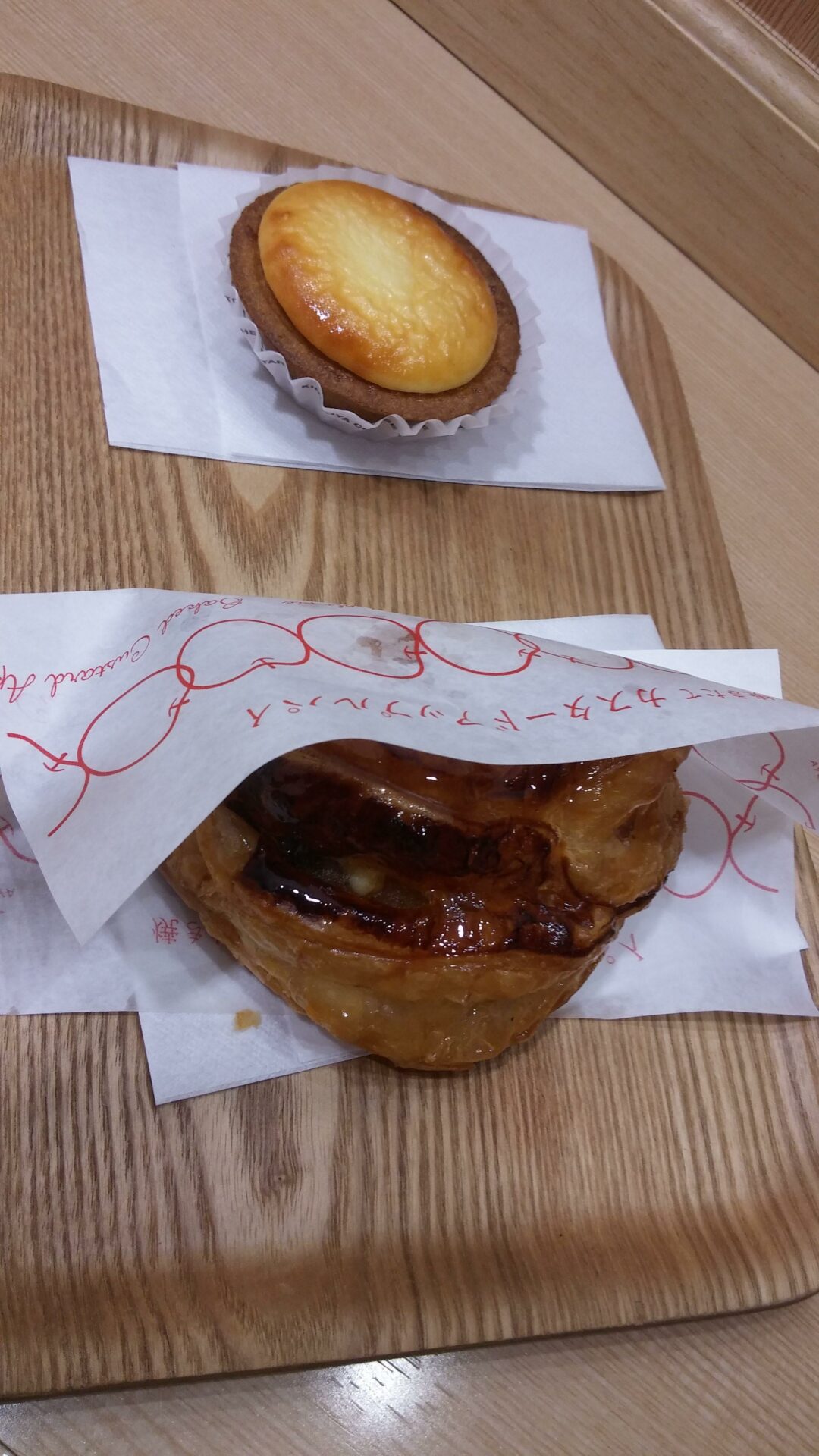 Notamment des kinotoya comme je les appelle, mais leur vrai nom est “yakitate cheese tart” soit “tarte fromagère cuite”. Une tuerie. Je les adule, à tel point que je me suis inventée une nouvelle règle, celle d’en manger deux à chacun de mes jours de congé. Voire trois… J’ai l’impression de les redécouvrir à chaque fois, c’est formidable. Je les appelle ainsi parce que ces petits trésors sont vendus dans le magasin Kinotoya. Que je suis originale !